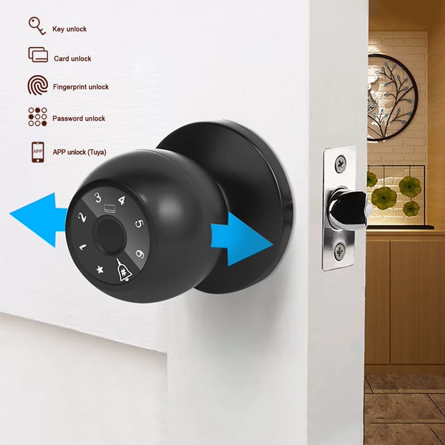 ✨ Cerradura en Bola Biométrica Inteligente con Huella Digital y Llave MSK-5