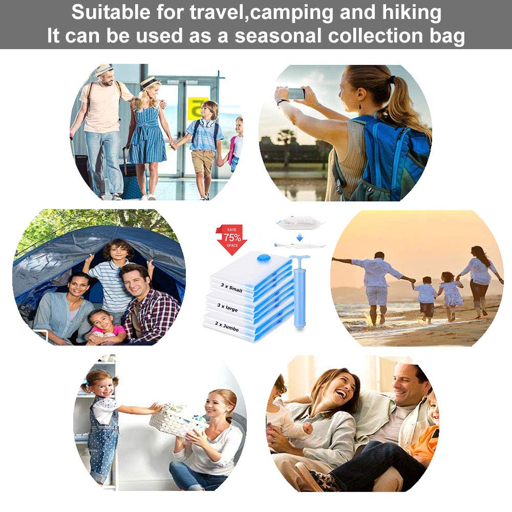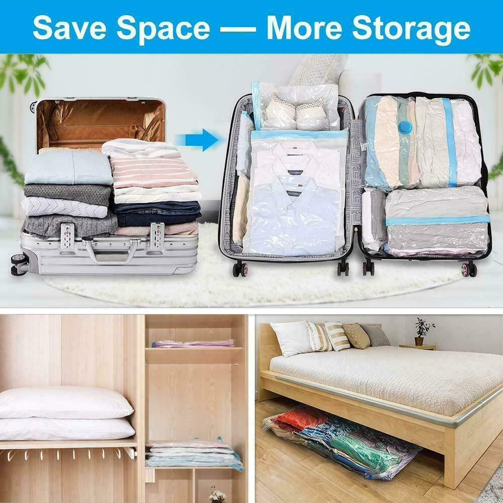 📌Bolsas reutilizables con cierre hermético para almacenamiento al vacío, bolsas ahorradoras de espacio con bomba manual de viaje para ropa, Paquete de 5.